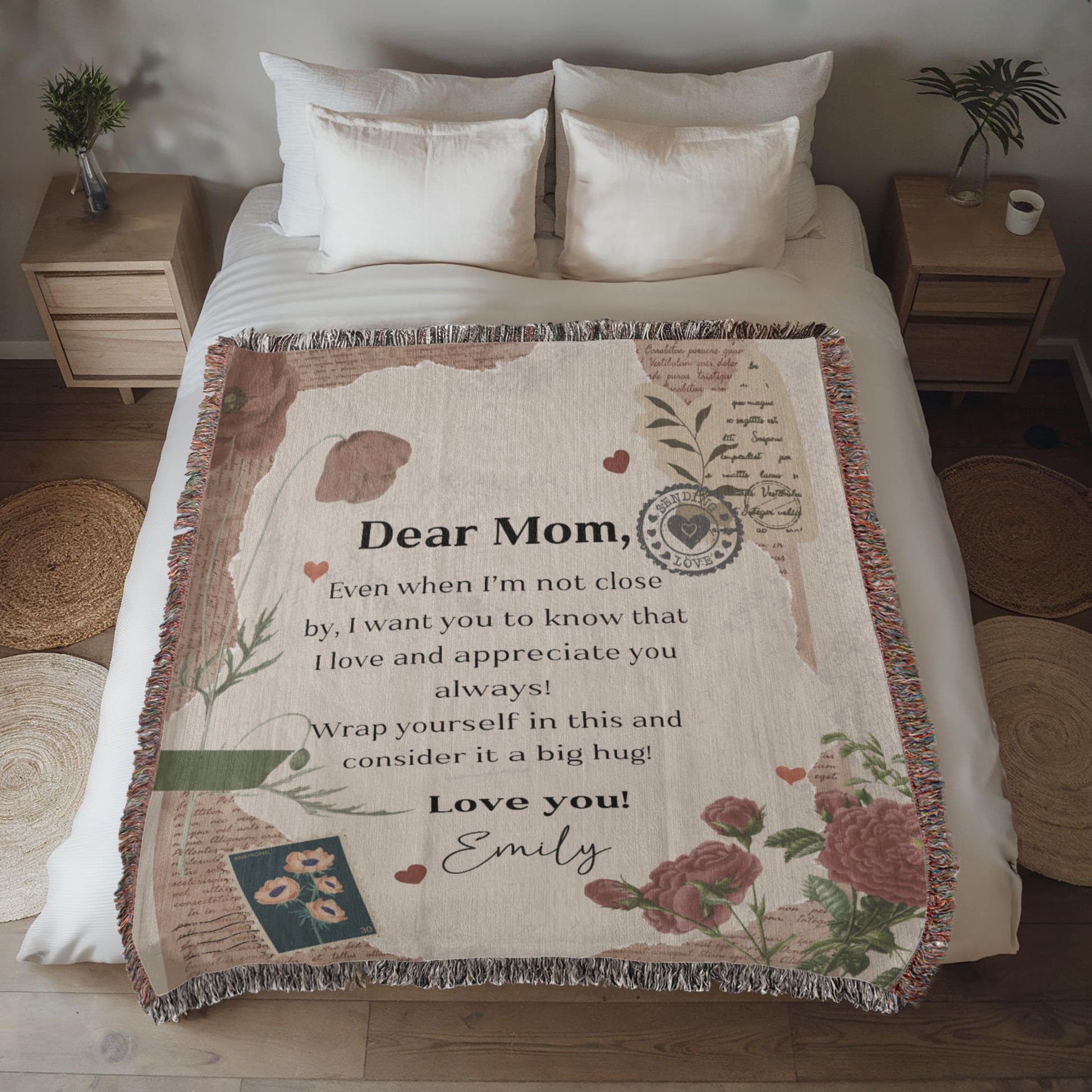 This premium woven blanket turns your heartfelt message into a timeless keepsake that she’ll cherish for years to come. Whether you’re near or far, this beautifully crafted throw wraps your love around her in the most comforting way.